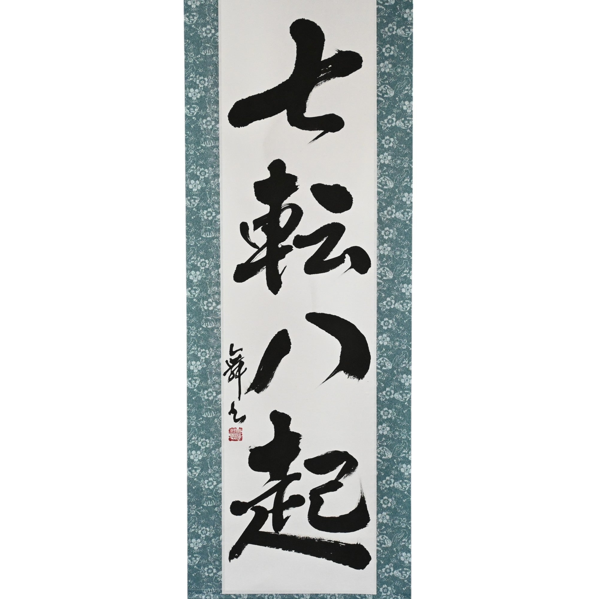 Questo rotolo di calligrafia giapponese presenta la potente frase 七転八起 (Shichiten Hakki) — che significa "Cadi sette volte, rialzati otto". Incorpora lo spirito indomabile del samurai: la ferma determinazione a rialzarsi, non importa quante volte la vita ti faccia cadere.
