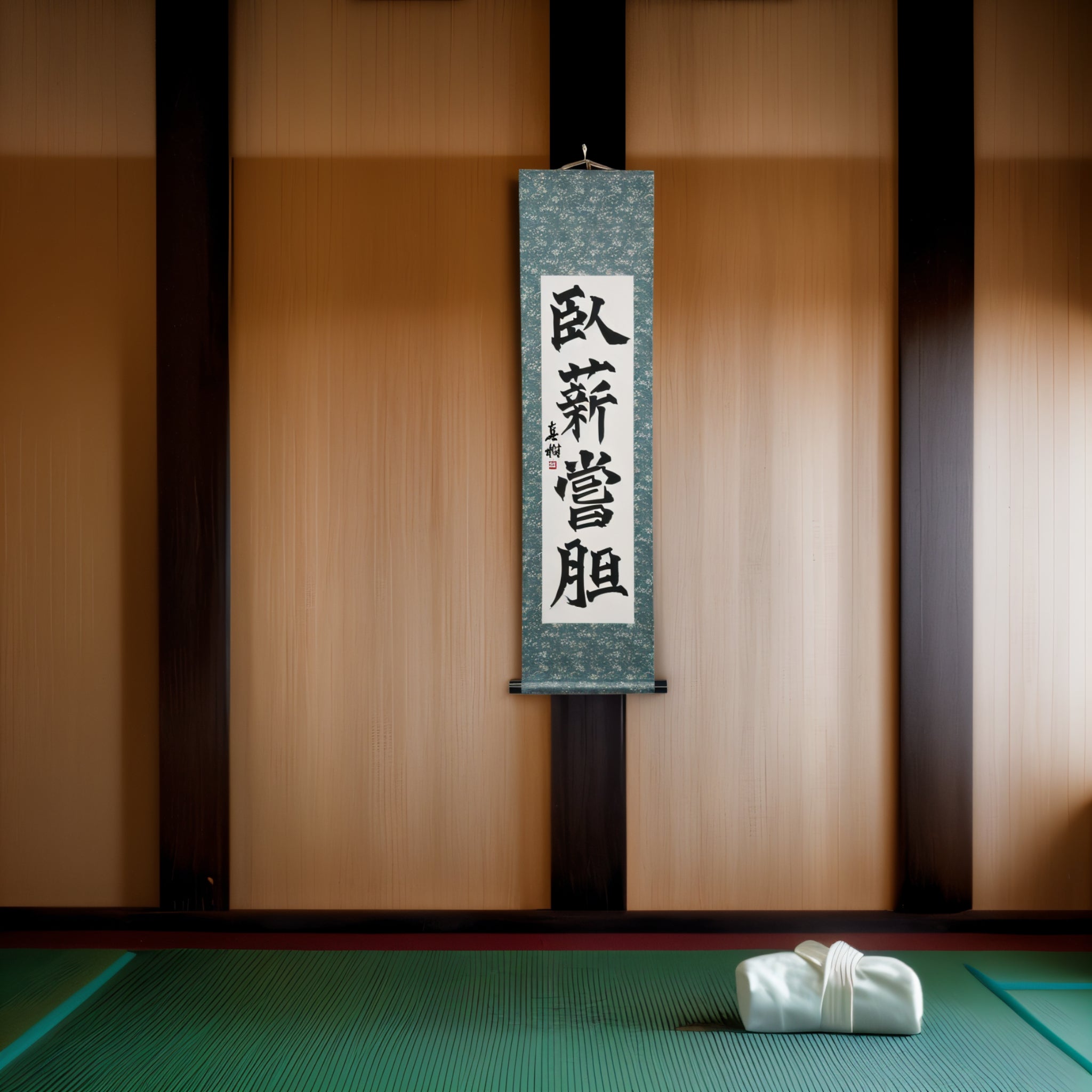 Le parole provengono da un'antica storia di un samurai che ha sopportato anni di difficoltà, preparandosi per il giorno in cui sarebbe rinato più forte. Letteralmente significa “dormire sul legno e assaggiare la bile amara”, insegna che la vera forza non si ottiene attraverso il comfort, ma si forgia attraverso l'avversità.